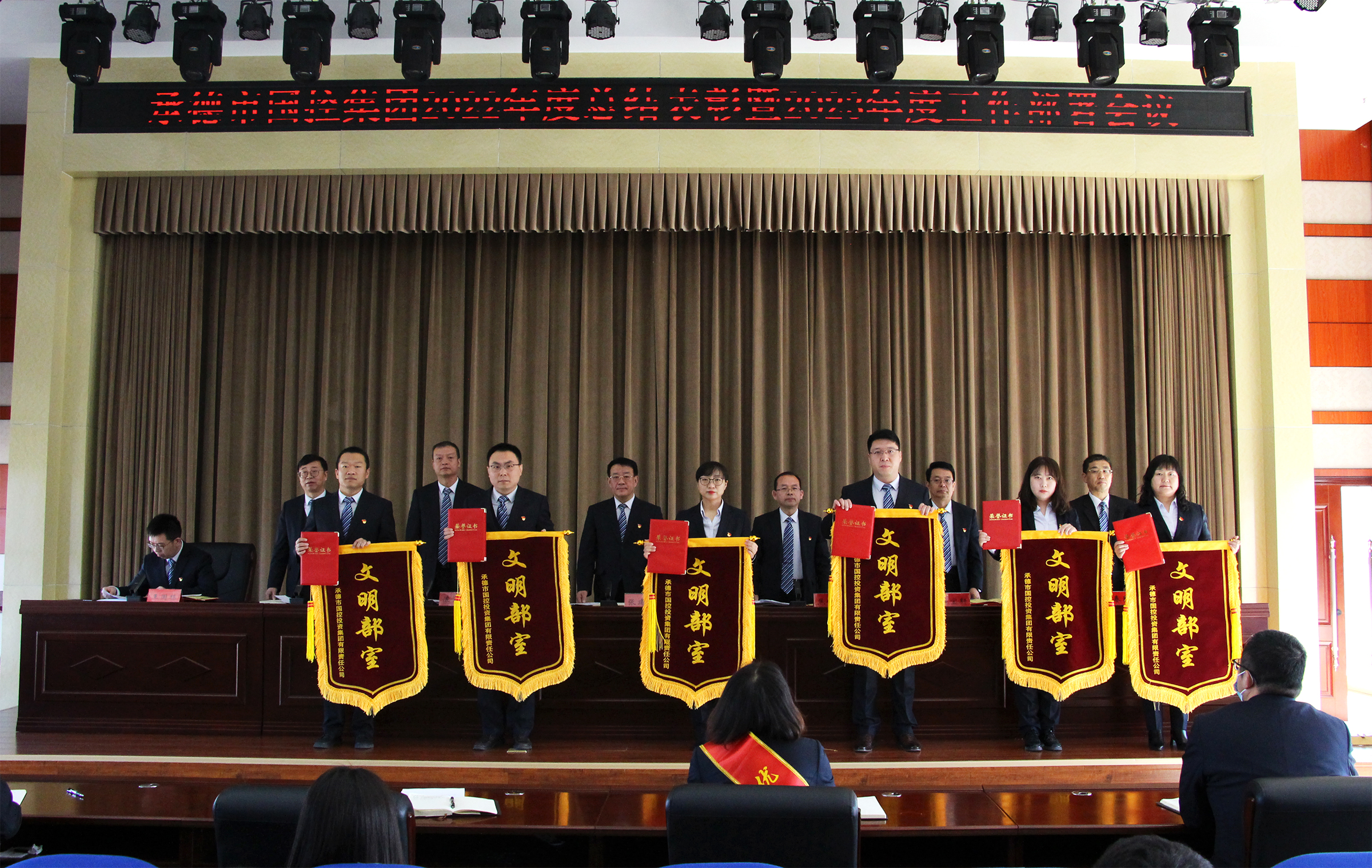會(huì)議宣讀了集團(tuán)公司2022年度受表彰情況,通報(bào)了獲得年度優(yōu)秀的部室、子公司、中層管理人員及員工,與會(huì)領(lǐng)導(dǎo)向獲獎(jiǎng)集體和個(gè)人頒發(fā)了錦旗、榮譽(yù)證書。按照2023年度工作部署要求,黨委書記、董事長(zhǎng)張建軍代表集團(tuán)公司逐一與集團(tuán)公司各部室及實(shí)際控制子公司簽訂了《2023年度績(jī)效考核目標(biāo)責(zé)任書》,堅(jiān)持目標(biāo)導(dǎo)向,強(qiáng)化責(zé)任,傳導(dǎo)壓力。